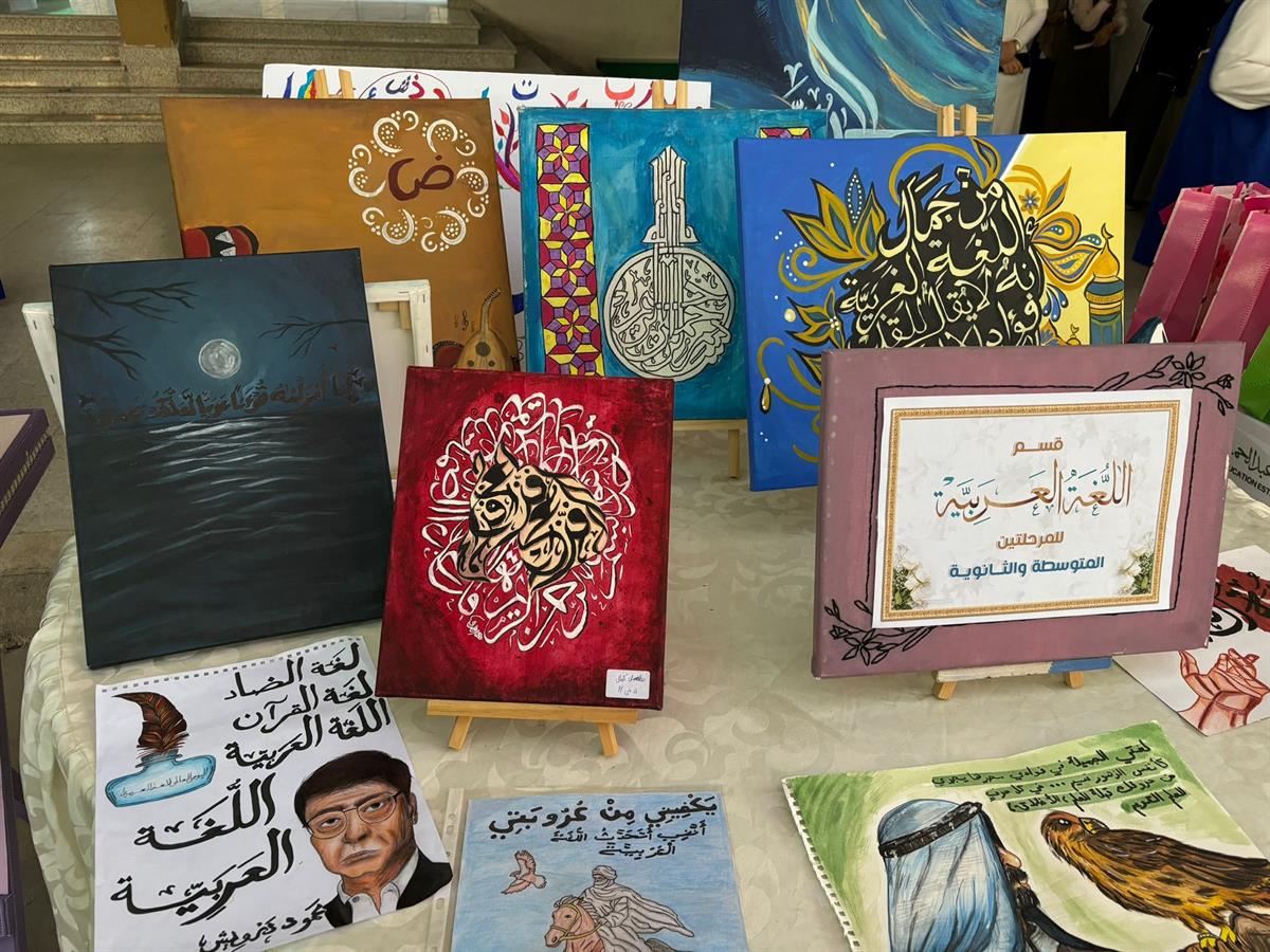 وبتكريم كوكبة من الطالبات المبدعات اللاتي فزن في مسابقة أجمل رسمة في حب اللغة العربية فاللغة يمكن أن تكون مصدر إلهام ليس للكتابة بل للريشة والألوان