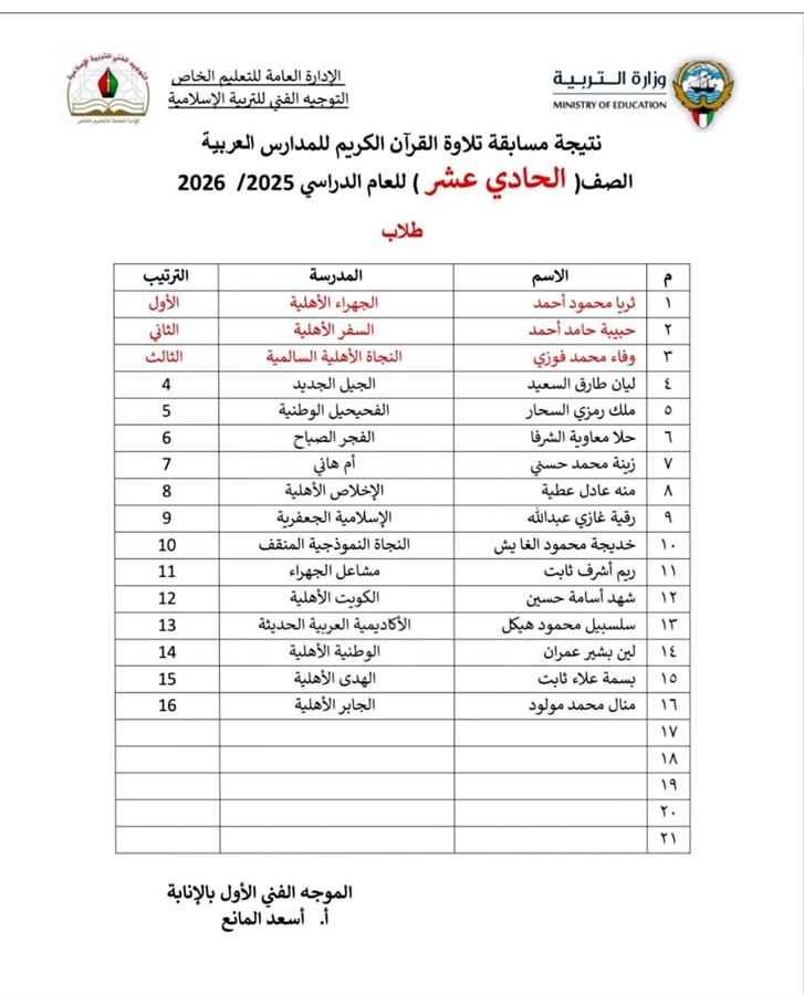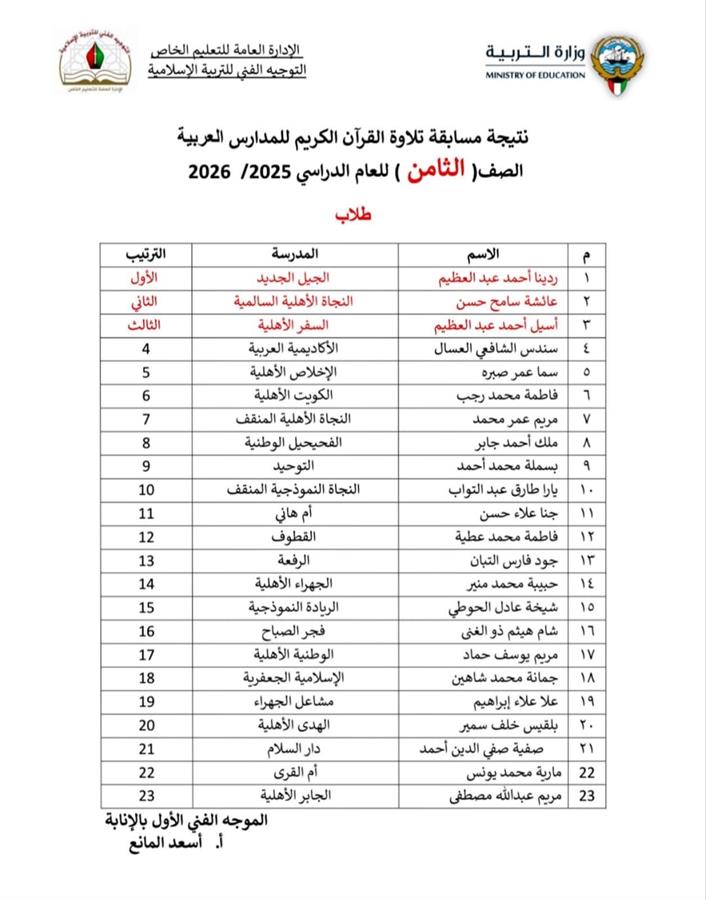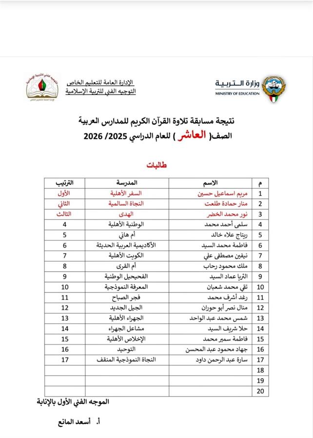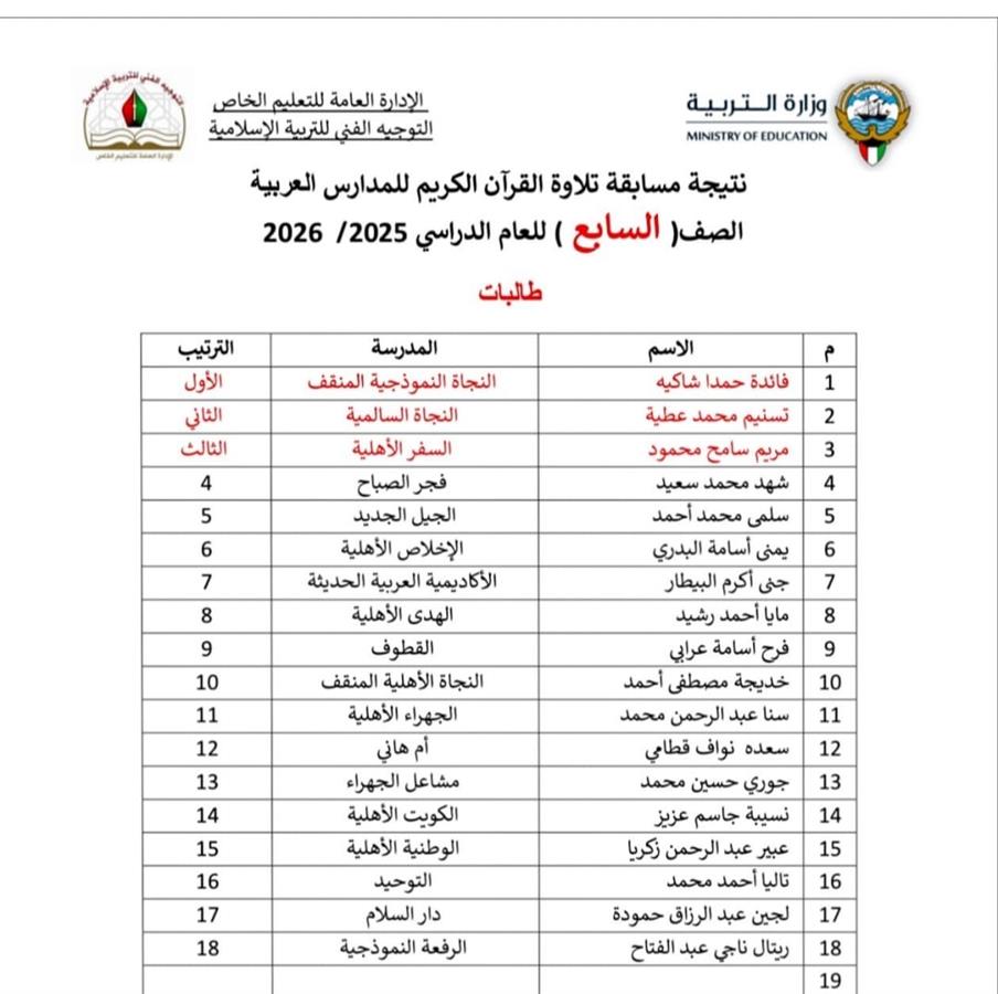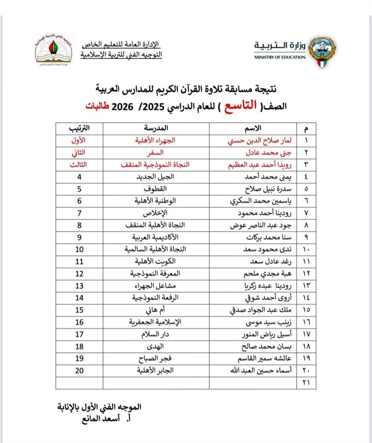 تصدرت طالبات مدرسة السفر الاهلية المراكز التالية في